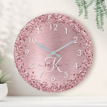Blush pink silver glitter dust metal name script large clock