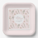 Blush Dusty Pink Girly Script Monogram Name Modern Paper Plate