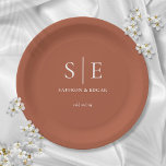 Rose Gold Brushed Metal Glitter Monogram Name Pape Paper Plate