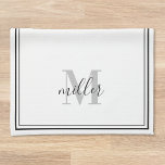 Modern Black White Personalised Name Monogrammed Tea Towel