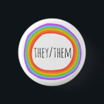 THEY / THEM Pronouns Rainbow Handlettered Pride 3 Cm Round Badge