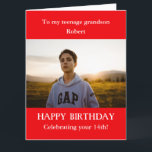 Birthday Grandson Fun Cute Cat on Skateboard Card
