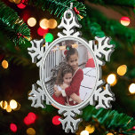 Pet Dog Simple Paw Print Custom Name Photo Snowflake Pewter Christmas Ornament