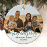 Bright colourful modern Christmas family photo Ceramic Ornament
