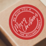 Modern Minimal Red Merry Christmas Family Classic Classic Round Sticker
