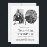 ANY Birthday Party Chic Simple Photo Black & White Classic Round Sticker