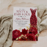 Sparkle Red Dress Roses Gold Leaf 60th Birthday Invitation