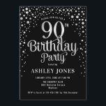90th Birthday Party - Silver White Invitation
