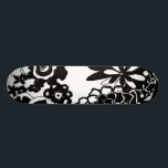 Skateboard Patrón gráfico de jardín floral blanco y negro
