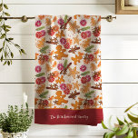 Watercolor floral botanical pattern monogrammed tea towel