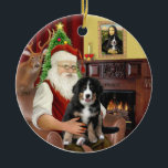 縁どCollie Dog w Christmas Santa Hat スモールクリスマスストッキング