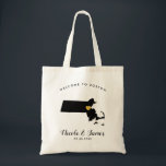 Massachusetts Map Wedding Welcome Bag Tote, Black