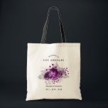 Plum and Silver Watercolor Floral Wedding Welcome Tote Bag