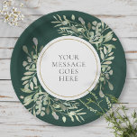 Elegant Ornate Border Emerald Green & Gold Wedding Paper Plates