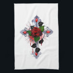 Blue Crescent Moon with White Flowers Kitchen Towel