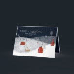 Vintage Christmas Bells, Holly & Church in Winter Holiday Card