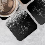 Elegant Black and White Custom Wedding Monogram Square Paper Coaster