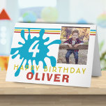 Cute Kids 4th Birthday Rainbow Photo Hearts Blue Wrapping Paper