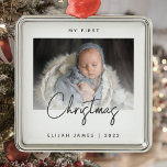 First Married Christmas Custom Photo White Script Ceramic Ornament