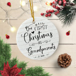 Cute script Our First Christmas as grandparents Ceramic Ornament