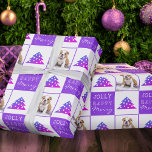 Merry Christmas with Two Square Photos - red green Wrapping Paper Sheet