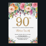Black Gold Floral 90th Birthday Party Invitation
