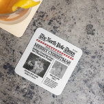 Your Photo Funny Christmas Santa Hat Family Name Square Sticker