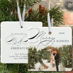Merry and Married Photo and Mr and Mrs Calligraphy Ceramic Ornament