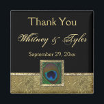 Black, Gold Peacock Feather Wedding Favour Magnet