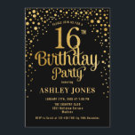 金ゴールドグリッター紙吹雪ブラック16th birthday party 招待状