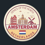 Amsterdam Netherlands City Skyline Emblem Magnet