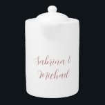 Trendy White Red Love Wedding Handwriting Name Teapot